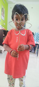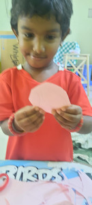 Today she wanted to draw a circle. Together we identified an object which can be used to draw a circle. We drew circles, it went on to cutting a circle. When I asked her where see saw circles, she said in flowers.